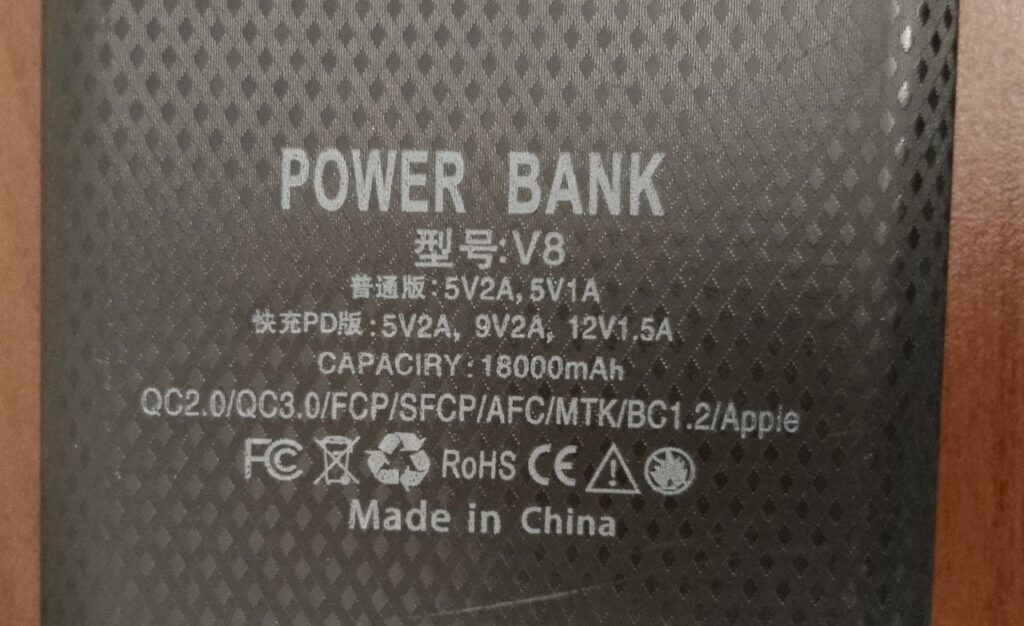 Los símbolos en chino no los entiendo, pero me hago una idea con lo que esta escrito junto a ellos. Insinúa una capacidad de 18000 mAh, pero esto no depende del aparato sino de las baterías que se le ponga. Yo puse de varias capacidades porque no cuento con tantas del mismo tipo, así que, debido a su conexión en paralelo, debo sumar sus amperajes para obtener su potencia real. lo cual también es cuestionable puesto que son baterías viejas.